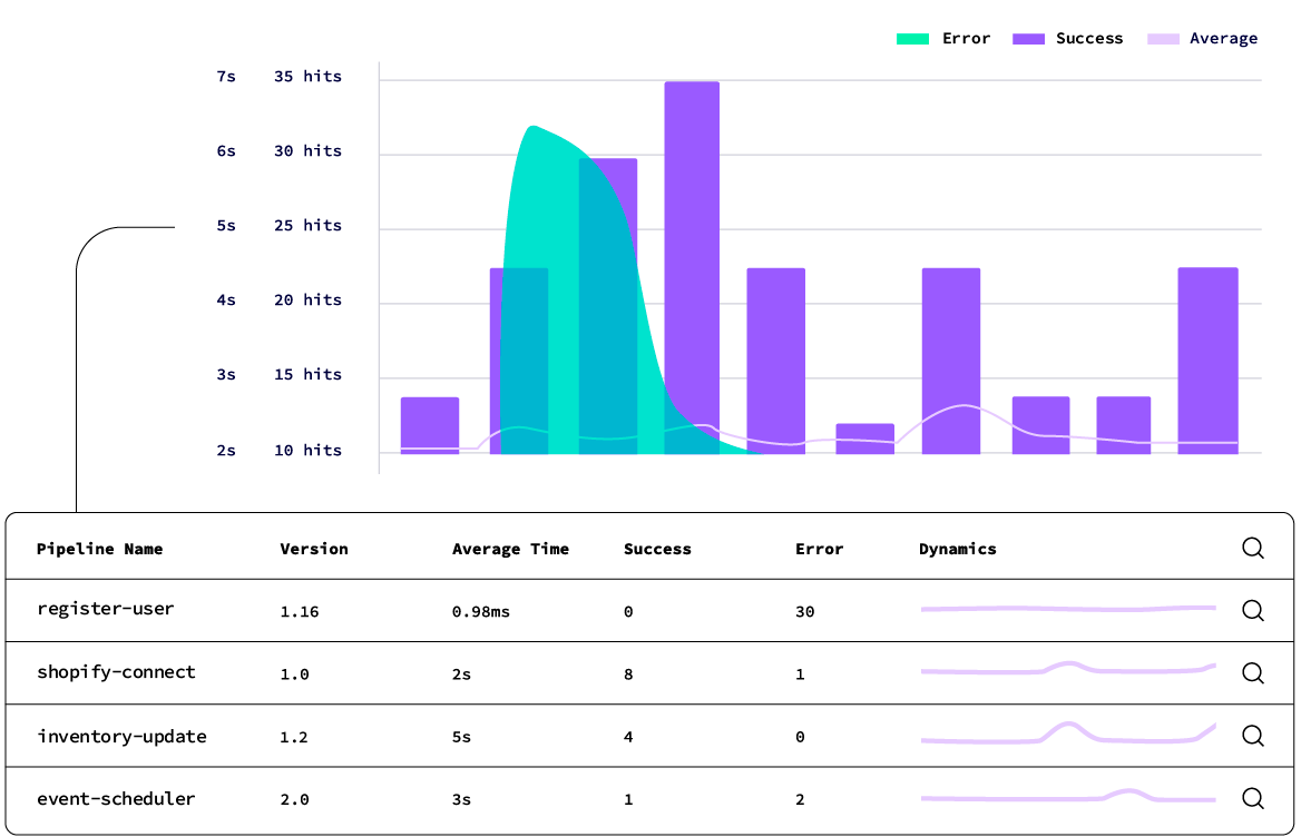 Monitor and troubleshoot integration pipelines across multiple projects and environments from a single, real-time dashboard. Detailed logs are generated for every execution, including request and response pipeline messages.